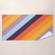 Bringen Sie Ihr Bad mit dem diagnal gestreiften Retro-Regenbogenhandtuch-Set in kräftige Retrofarben und Ästhetik. Farbensperren mit Farbtönen wie Blutorange, Goldernte, Auberginen, Himmelblau und Lavendel werden Ihre Sinne begeistern und jeden Raum erhellen.