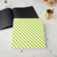 Diagonal lime green and white stripes create a vibrant, dynamic pattern. The bold lines convey a sense of movement and energy.