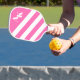 Heiße rosa und weiße diagonale Streifen mit diagonal platzierten Initialen in der oberen rechten Ecke.