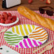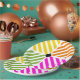 Entspannen Sie bei einer Geburtstagsfeier oder einem Picknick im Sommer mit diesen lustigen Tellern mit farbenfrohen geometrischen Streifen. Dieses Design ist minimalistisch und modern, sodass es mühelos mit einer Vielzahl von Themen zu mischen und für Menschen aller Altersgruppen ansprechend.