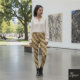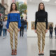 Diagonal Stripe Brown Gold Metallic Glossy Leggings