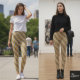 Diagonal Stripe Gold Silver Metallic Glossy Leggings