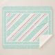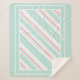Dieses gemütliche Weihnachtssherpa-Deckendesign mit diagonalen Streifen in minzgrün, weiß und rot auf einem minzgrünen Hintergrund verstreut mit Schneeflocken und Sternen. Suchen Sie ID440, um weitere koordinierende Produkte und zusätzliche Farboptionen für dieses Design zu sehen.