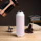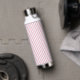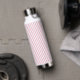 Diagonal white and pink stripes create a soft, playful pattern. The alternating colors give a sense of simplicity and lightheartedness.