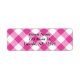 Hübsche Rosatöne im Gingham-Muster. Sie können aus über hundert verschiedenen Schriftart-Stilen im System auswählen. Schafft eure eigenen Rücksendeadressen-Aufkleber für sie.
