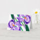 Meine ursprüngliche Wasserfarbmalerei druckte auf einer Gruß-Karte, die lila Irisblüte und zwei knospendie iris-Blumen gegeneinander gehalten wurden in den diagonalen Winkeln kennzeichnet.