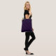 Das ist eine Kombination aus tiefem und lebendigem lila mit lila schattigen Streifen mit zwei Mustern auf einem schattigen schwarzen Hintergrund, die eine bemerkenswerte Mischung aus Regalfarben und -formen schafft und so ein kraftvolles Lifestyle-Accessoire zum Design von Taschen macht.