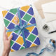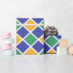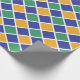 Diamant Muster in Orange, Grün, Blau und Weiß.