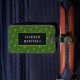 Diamond Geometry Muster Gepäckmarke. Einfaches und modernes Design. Der grüne Hintergrund und das geometrische Muster können durch Klicken auf die Schaltfläche Anpassen auf eine beliebige Farbe geändert werden. © Butterfly Design Space.