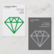 Eine Visitenkartenvorlage mit attraktivem Juwel oder Diamantenmotiv auf der Vorderseite. Firmenname, Geschäftstyp und Adresse auf der Vorderseite mit Namen, Jobtitel, Telefonie, Web- und E-Mail-Adressen auf der Rückseite, mit einem ähnlichen Layout auf grauem Hintergrund mit einem Diamantmotiv in einem leichteren Grau. Diese Karte kann auch weiter angepasst werden.