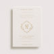 Diese klassische Hochzeitseinladung besticht durch ein modernes, rautenförmiges Monogramm, in dessen Mitte die Initialen der Braut und des Bräutigams sichtbar erscheinen. Das Monogramm ist von klassischer Typografie in einem goldenen Ton umgeben und verleiht dem Design eine Touch Eleganz. Feine Blumendetails verschönern die Einladung noch weiter und verleihen ihr ein romantisches und zeitloses Ambiente. Das gesamte Design ist raffiniert und einzigartig und eignet sich somit perfekt für eine stilvolle und anspruchsvolle Hochzeit.