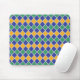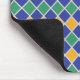 Geometrisches Design von Ron Trickett in grün, blau und gelb. Diamantmuster
