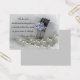 Üben Sie etwas Hochzeitsfreundlichkeit, wenn Sie eine Spendenkarte in der Umgebung Ihres Empfangs arrangieren. Die eleganten Diamond Rings and White Pearls Wedding Wohltätigkeit Fevor Card Staaten, die anstelle eines traditionellen Gastgeschenks, eine Spende in ihrem Namen für die Wohltätigkeit gemacht wurde. Personalisieren Sie es mit dem Namen Ihrer bevorzugten Wohltätigkeit und den persönlichen Namen der Braut und des Bräutigams. Diese elegante, individuell gestaltete Wohltätigkeit-Gunst-Karte verfügt über ein nahes Foto eines Diamant-Verlobung-Ringes, ein Set mit Hochzeitsband und eine Perlenhalskette.