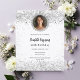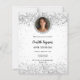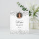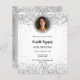 Eine Einladung für eine elegante 21. Geburtstagsfeier (oder jedes Alter). Ein schick weißer Hintergrund auf der Vorderseite. Dekoriert mit Imitaten silberne Konfetti. Personalisieren Sie Ihr Foto und fügen Sie es in den Rahmen, den Namen und die Party-Details des Imitats ein. Der Name wird mit einem handgeschriebenen Stilskript geschrieben. Zurück: Imitate silber aussehender Hintergrund mit Glitzern. 1 Blatt = 1 Einladung mit Druckkante bis Kante.