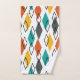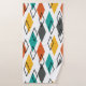 Dieses Handtuchhandtuch-Set ist in einem modernen, orangefarbenen, gelben, türkisfarbenen, grauen und auf einem weißen Feld verstreuten Diamantendesign aus der Mitte des Jahrhunderts gehalten.