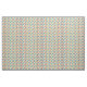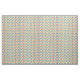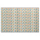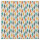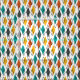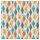 Dieser Stoff hat ein modernes Design von Diamanten in orange, gelb, türkis, grau, und umrissen auf einem Feld von weiß.