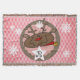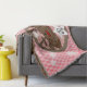 Die schöne Weihnachtsdecke mit einem niedlichen Rentier aus rosa Diamanten, einem Streifen massiven Brauns und einem rosa Zentrum mit weißen Polka-Punkten und Schneeflocken.