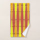 Dieses Handtuch Set hat eine geometrische Gestaltung von roten Diamanten und gelben und goldenen Dreiecke auf einem Bräunungsfeld.