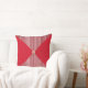 Das geometrische Kissen mit dem Imitat ist rot gestreift.