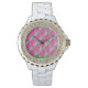 Ein schönes Design mit einem Diamantenmuster mit Rosa und Kalkgrün. Passen Sie Ihre Wünsche an. Viele tolle Uhrenstile, die man auswählen kann, wenn man nicht für sich ist.