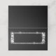 Diese gefaltete Platzkarte wird in Schwarz mit einem eleganten, glänzenden Diamantenrahmen dargestellt. Passen Sie dieses Objekt an oder schreiben Sie einfach per Hand den Namen. Lizenziertes Bild