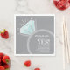 Blauer grauer, moderner Spaß Fundus und Diamant Verlobung Ringservietten. Sie sagte ja Verlobung Ring Party Servietten personalisieren mit Ihrem eigenen Namen und Paare Spaß Fakten. Weitere passende Artikel sind ebenfalls verfügbar. © Original Grafik Ring Design von www.sarahtrett.com für www.mylittleeden.com und www.mylittleedenweddings.com auf zazzle.