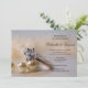 Personalisieren Sie die elegante Diamond Ring and Pearls Wedding Einladung mit den Namen der Braut und Bräutigam und spezielle Ehezeremonie Details und laden Sie zu Ihren bevorstehenden Nuptials ein. Dieses stilvolle Hochzeitsladen bietet ein nahes Foto eines runden Diamant Verlobung Ringes und eine Perlenhalskette.