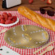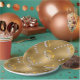 Teller der Hochzeitsfeier. Diamant und Goldringe.