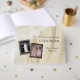 Eleganter weißer Spitzentrim und weißer Satin-Hintergrund mit schwarz-silberfarbenem Rahmen auf links und modernem braunen Rahmen rechts für individuelle damalige und jetzt Fotos, sowie mehr Vorlagen für Vorder- und Rücken.