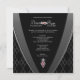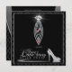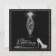 Eine Liebe Story endet nie Schwarze Krawatte Hochzeitthema Diamond Krawatte mit rubinakzentuierten Liebe Knoten Krawatte Clip Monogramm. Eine Liebe beendet die Typografie nie mit dem Symbol eines Diamantglas-Slippers, das mit passenden Krawatte-Ruby-Emblemen geschmückt ist. Schöner schwarzer Diamant Samt Hintergrund mit Satin Look tuxedo Trim.