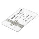 Diese schöne Rettung des Datums Magneten ist eine stilvolle, lang anhaltende Art, Ihren großen Tag zu verkünden. Personalisieren Sie den Magneten, indem Sie den Text in den angegebenen Feldern ändern. Sie können Stil, Größe und Farbe des Schriftartes ändern und die Hintergrundfarbe ändern, indem Sie die Schaltfläche Anpassen Es verwenden.