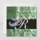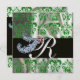 DIAMOND FEATHERS GREEN ICE SILK DAMASK MONOGRAM EINLADUNG