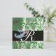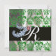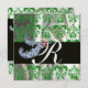 DIAMOND FEATHERS GREEN SILVER SILK DAMASK MONOGRAM EINLADUNG
