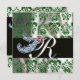 DIAMOND FEATHERS GREEN SILVER SILK DAMASK MONOGRAM EINLADUNG