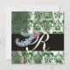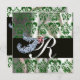 DIAMOND FEATHERS GREEN WHITE SILK DAMASK MONOGRAM EINLADUNG