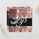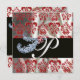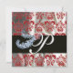 DIAMOND FEATHERS RED WHITE SILK DAMASK MONOGRAM EINLADUNG