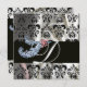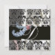 DIAMOND FEATHERS WHITE BLACK SILK DAMASK MONOGRAM EINLADUNG