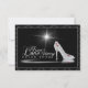 Schwarze Krawatte Hochzeitsthema Eine Geschichte der Liebe beendet Typografie nie mit dem Symbol eines Diamantglas-Slippers, das mit Ruby-Emblem und Liebe-Knoten geschmückt ist. BACK: Diamant Krawatte mit rubinakzentrierten Liebe Knoten Krawatte Clip Monogramm und schöne schwarze Diamant Samt Look Hintergrund mit eloquent danke Ihnen Nachricht.