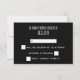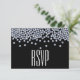 Eine einfache, aber schöne, moderne Hochzeitserie RSVP Antwortkarte in Schwarz und Weiß mit blauen Akzenten. Oben auf der Karte befinden sich Imitate Diamanteffekt Glitzer Glitzern.