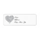 Legen Sie eine abschließende Touch auf Ihre Hochzeitskorrespondenz, wenn Sie diese einfach eleganten Adressetiketten senden. Diese schönen Adressetiketten sind alle bereit, personalisiert zu sein. Personalisieren Sie die Etiketten, indem Sie Ihren Namen und Ihre Adresse in das angegebene Feld eingeben. Sie können Stil, Größe und Farbe des Schriftartes ändern und die Hintergrundfarbe ändern, indem Sie die Schaltfläche Anpassen Es verwenden.