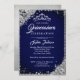 Diamond Lace Sparkle Navy Silver Quinceanera Einladung