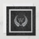 Monogramm in einem Rautenlauhörnchenmuster auf schwarzem Damast.