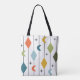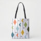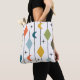 Diese Tasche hat ein modernes Design von vertikalen Linien mit Diamanten und Bumerangs, mit Sternexplosionen im Hintergrund verstreut.