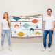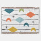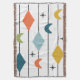 Diese Decke hat eine moderne Mitte des Jahrhunderts Design von vertikalen Linien mit Diamanten und Bumerangs, mit Sternexplosionen verstreut im Hintergrund.