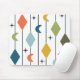 Dieses Mauspad hat ein modernes Design von vertikalen Linien mit Diamanten und Bumerangs, mit Sternexplosionen im Hintergrund verstreut.