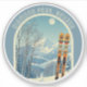 Sticker from a wonderful skiing holiday in the beautiful mountains of Diamond Peak, Nevada. This sticker features an arch with a stunning blue-grey mountain landscape and retro ski boards in an orange tribal pattern in the foreground. The rest is in a lovely light blue tone with the location lettering in a modern font. The design is a lovely combination of retro and modern, and I hope you enjoy it!