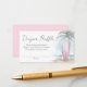 On the right side, the watercolor artwork features a pink surfboard standing upright beside a green palm tree, with soft sand and light ocean water in the background. The hand-painted style gives it a breezy, coastal feel, and the back of the card is blush pink for a soft, charming finish.