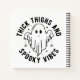 Dieses lustige und spöttische Halloween-Design enthält den Satz "dick thighs and Spooky Vibes", der in einem runden Layout um eine niedliche, klassische Geisterstube angeordnet ist. Der Geist mit seinen einfachen, aber ausdrucksstarken Augen ist der zentrale Fokus des Designs und verleiht ihm ein spielerisches und skurriles Ambiente. Von den Händen des Geistes hängen zwei kleine Spinnen, die dem ansonsten leichtsinnigen Design eine Touch von Kriechlichkeit hinzufügen. Der Text ist fett und sauber, was einen starken visuellen Effekt erzeugt und gleichzeitig einen spielerischen Ton beibehält. Das Schwarz-Weiß-Farbschema verleiht dem Design einen zeitlosen und vielseitigen Look, der es perfekt zu Halloween macht.