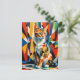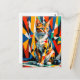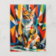 Kühne abstrakte Katzenkunst mit auffallenden Farben und geometrischen Formen.