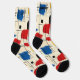 Entfesseln Sie Ihre künstlerische Seite mit diesen fett abstrakten Socken und zeigen Sie dynamische Pinselstriche in Rot, Blau, Gelb und Schwarz auf einem cremefarbenen Hintergrund. Das geometrische Rastermuster fügt Strukturen hinzu und schafft ein harmonisches Gleichgewicht zwischen Kreativität und Ordnung. Diese Socken sind perfekt für Trendsetter und Kunstliebhaber geeignet und sind eine einzigartige und stilvolle Ergänzung zu jedem Outfit.